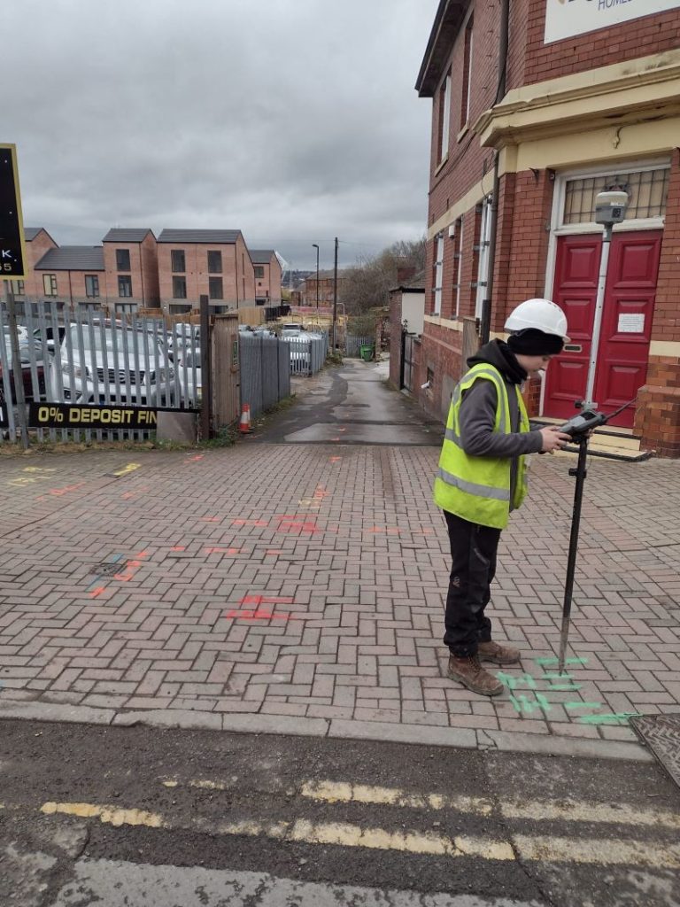 Different variety of photos this morning… From setting out retaining walls & plots in Clayton-le-Moors to Utility mapping in Rotherham. It’s never a dull day, despite the weather, for Site Surveying Services Ltd!