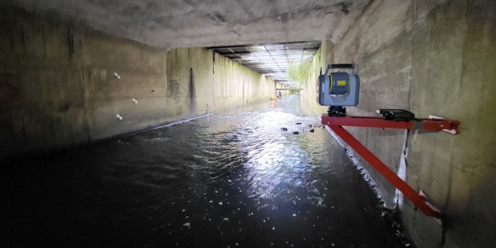 Surveying hydraulic structures including: bridge soffit levels, culvert dimensions, tunnel profiles, point clouds and elevations & integrated topographical mapping